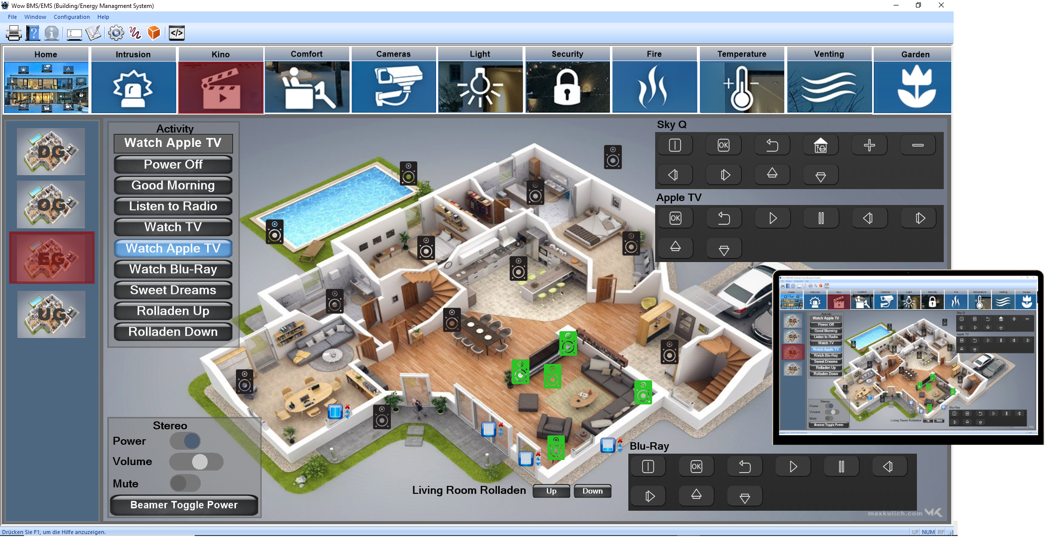 Luxury Home: 350 Sensors - Cameras, Garden (Robot Mower and Sprinklers), Lights, Heating, Intrusion, Shutters, Fire, Intercom, Water, Weather Station, and Home Kino.